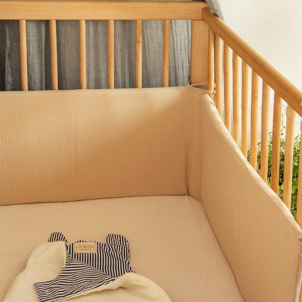 • Protector de cuna liso beige en algodón de muselina orgánico Protector de cuna liso beige en algodón de muselina orgánico